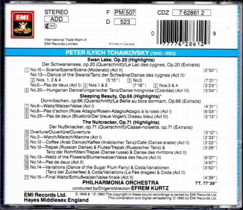チャイコフスキー:3バレエ抜粋集 クルツ=PO (CDZ762861)