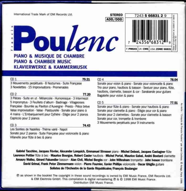 • サブ画像2:▽プーランク:室内楽曲集,ピアノ曲集 タッキーノ, フェヴリエ(p) 他 (EMI・5CD)ジャケット写真