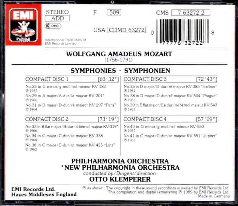 モーツァルト:交響曲集 (11曲) クレンペラー=PO, NPO (CMS763272・4CD)