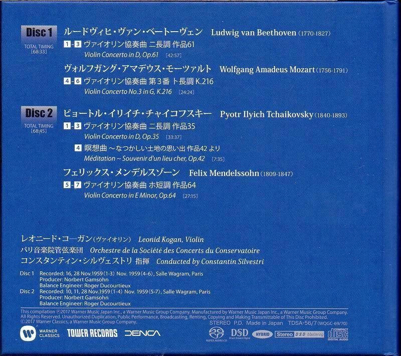 {SACD-HYBR} ヴァイオリン協奏曲集 (ベト, モツ, メン, チャイ) コーガン(vn) シルヴェストリ=OSCC (TDSA56・2CD)