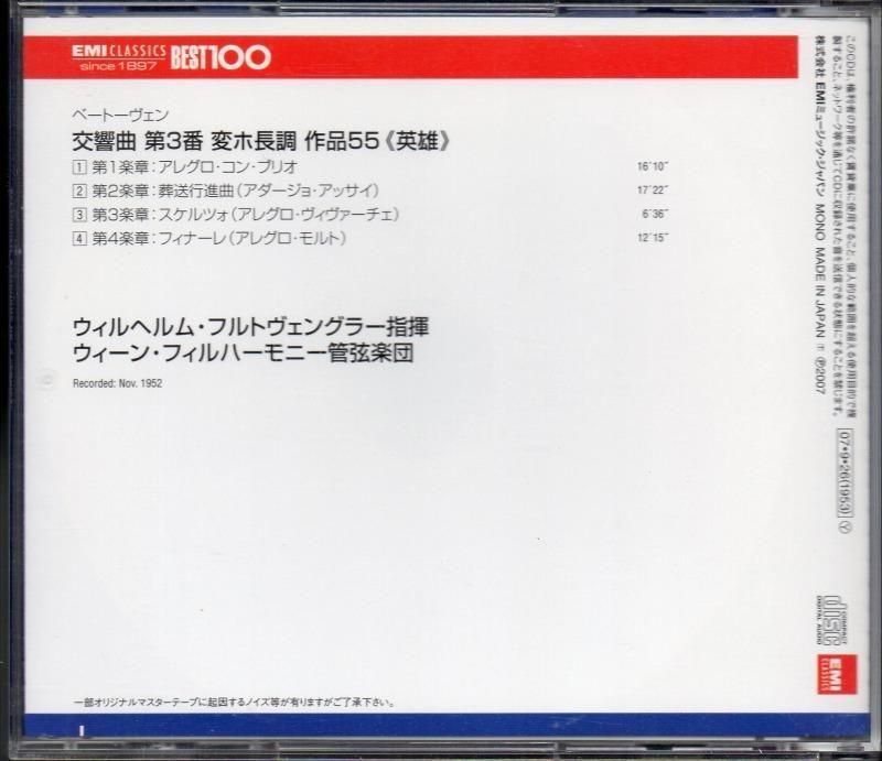 ベートーヴェン:交響曲第3番 フルトヴェングラー=WP /52年 (TOCE14033)