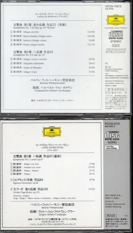 {DISC-1} ベートーヴェン:交響曲第3,8番 カラヤン指揮 BP DG*UCCG-70012
