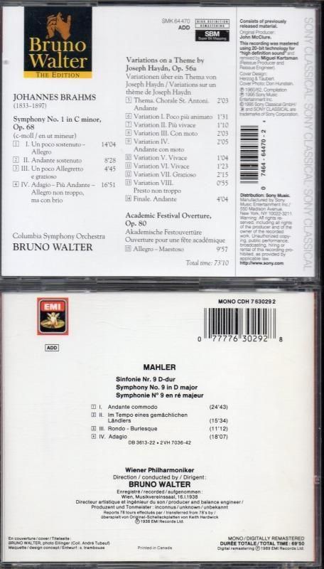 {DISC-3} ブラームス:交響曲第1番 他 ワルター指揮 コロンビアso SONY*SMK 64470