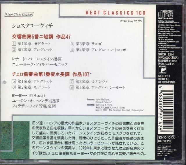 {DISC-7} ショスタコーヴィチ:交響曲第5番 他 バーンスタイン指揮 NYP 他 SONY*SRCR 9214