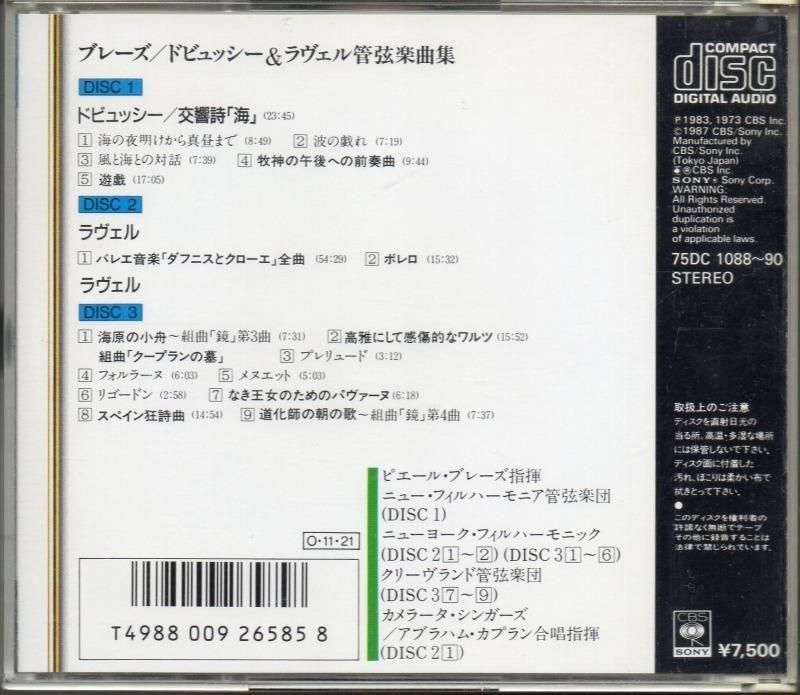 ラヴェル,ドビュッシー管弦楽曲集 ブーレーズ=NPO, NYP, Clev (75DC1088・3CD)