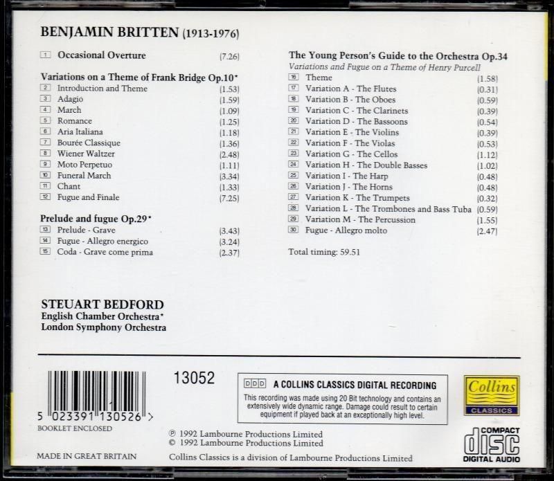 ブリテン:ブリッジ変奏曲,管弦楽入門 他 ベッドフォード=LSO, ECO (COLLINS)