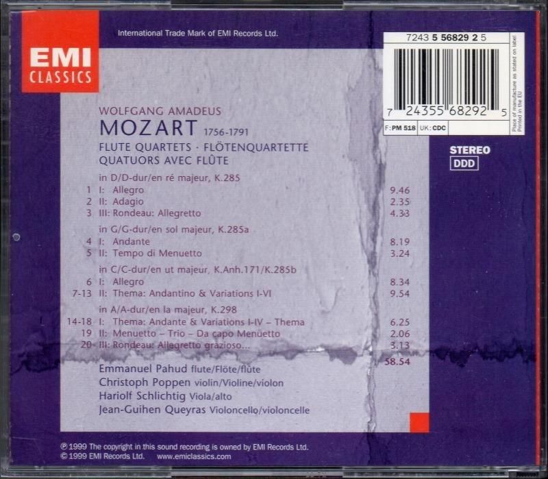 モーツァルト:フルート四重奏曲全曲 パユ(fl) ポッペン(vn) 他 (EMI)