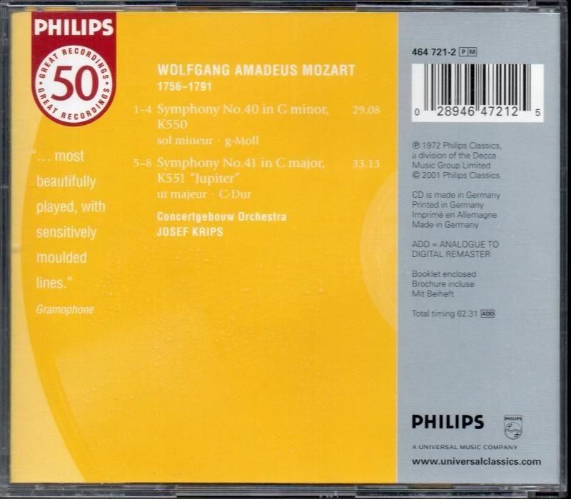 • サブ画像1:モーツァルト:交響曲第40,41番 クリップス=KCO (PHILIPS)ジャケット写真