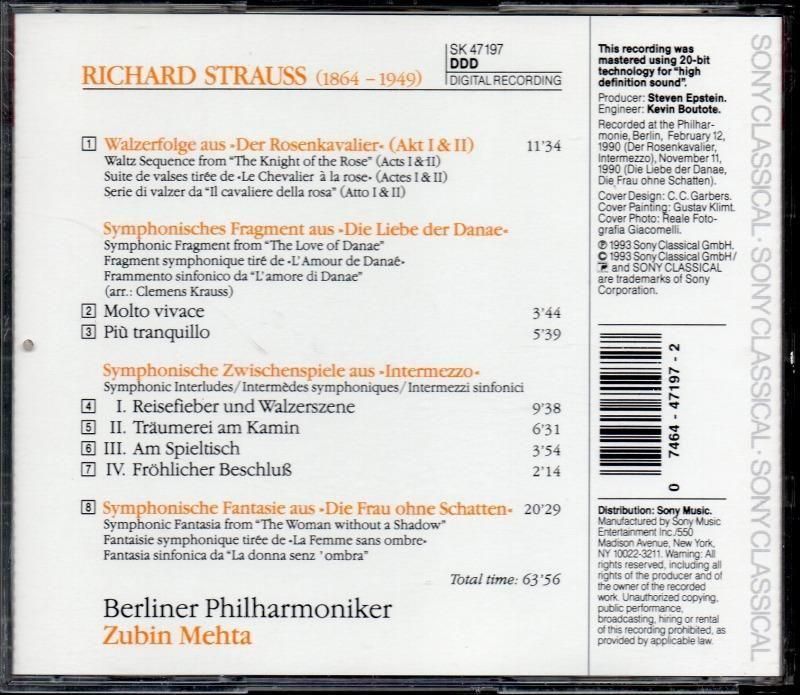 Rシュトラウス:オペラ管弦楽曲集 (4曲) メータ=BP (SK47197)