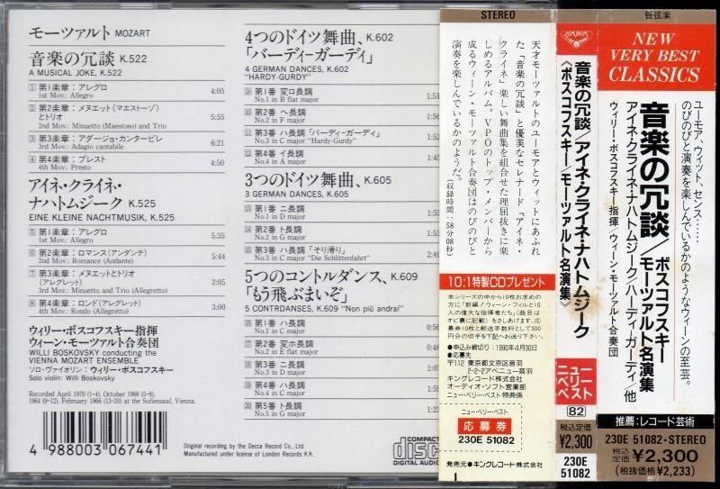 モーツァルト:音楽の冗談,アイネ・クライネ 他 ボスコフスキー=MEW (230E51082)