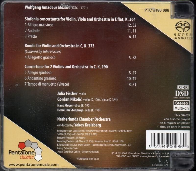 {SACD-HYBR} モーツァルト:協奏交響曲K364,コンチェルトーネ 他 Jフィッシャー(vn) 他 (PTC5186 098)