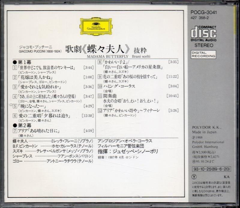 プッチーニ:蝶々夫人 抜粋 シノーポリ=PO; フレーニ(S) 他 (POCG3041)
