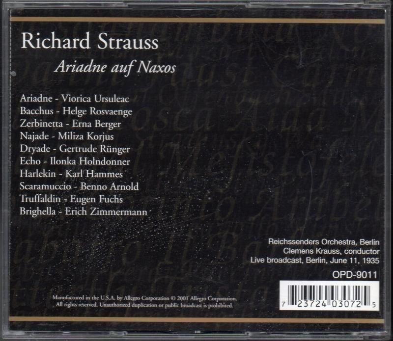 Rシュトラウス:ナクソス島のアリアドネ Cクラウス /35年L (プロローグ: ベーム /44年L) (OPD9011・2CD)