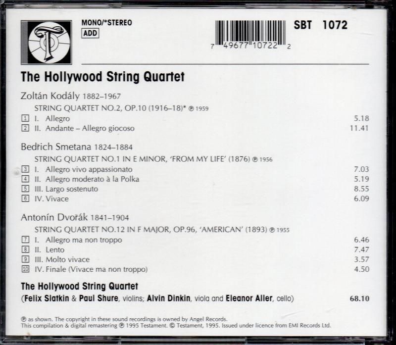 コダーイ, スメタナ, ドヴォルザーク:弦楽四重奏曲 (第2 / 1 / 12番) ハリウッドSQ (SBT1072)