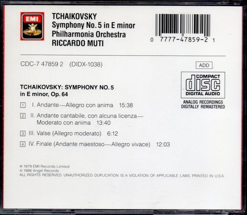 チャイコフスキー:交響曲第5番 ムーティ=PO (CDC7478592)