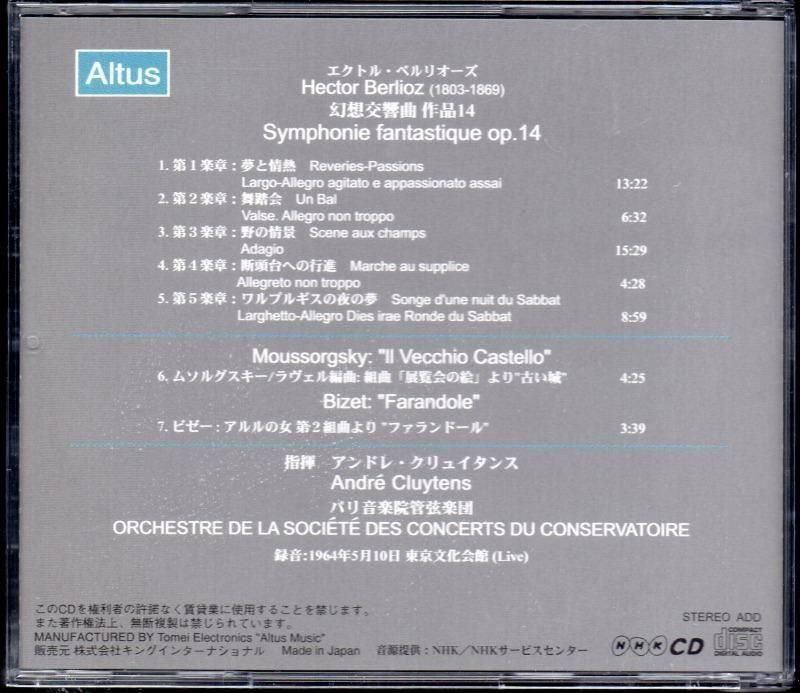 ベルリオーズ:幻想交響曲 他 クリュイタンス=OSCC /東京L (ALT003)