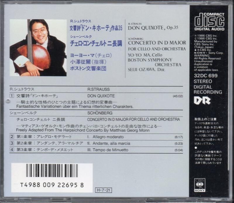 Rシュトラウス:ドン・キホーテ,シェーンベルク:チェロ協奏曲 ヨーヨー・マ(vc) 小澤征爾=BSO (32DC699)