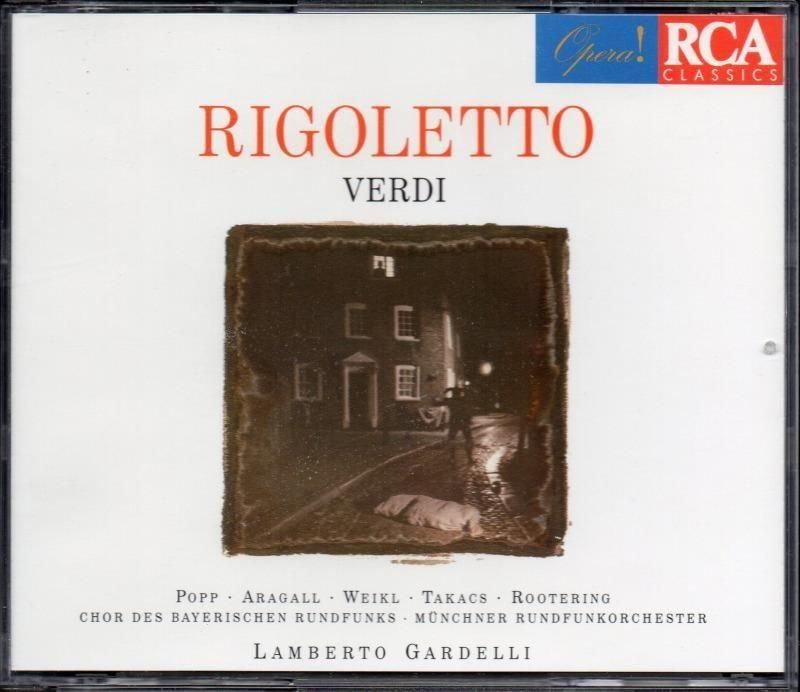 −ドイツ系歌手を中心としたドイツでの録音で、スペインのアラガル、イタリアのガルデッリを招いて録音されたものというところでしょうか。美声のヴァイクルはリゴレットに全く似つかわしくないと思われますが、細かな、時に大胆な感情表現を駆使してリゴレットの心理を表しています。ポップのジルダは究極の箱入り娘にしては最初から自我に目覚めている感じですが、あまりイタリア語が得意でないようであることが面白い効果を上げているとも言えそう。昔 大月楽器店で働いていた時 同じくオペラ・ファンであった先輩が「リゴレットってどこでジルダ拾ろたんやろな」とふとおっしゃったことが蘇りました。−指揮のガルデッリが素晴らしい。イタリア・オペラらしい直截なダイナミズムを南ドイツのオケから引き出すとともに、長年のイタリア・オペラの指揮から獲得した含蓄 (押すばかりではなく引きの表現) のようなものも表されています。