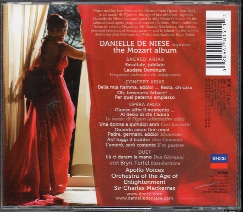 −ドゥ ニースはメルボルン生まれ、アメリカ人のリリック・ソプラノ (1979- )。レッジェーロからコロラトゥーラ。両親はスリランカ出身。幼い頃から才能を発揮し、15歳の時 ロサンゼルス・オペラでプロとしてオペラ・デビュー。2005年 イギリス・グラインドボーンのヘンデル:「ジュリオ・チェザーレ」のクレオパトラ役が評判を呼び、広く注目を集めるようになりました。以後 世界中の主要なオペラ・ハウスで歌い、またそれだけにとどまらず、現代オペラ初演、ブロードウェイや映画出演まで多岐にわたっています。初来日は2003年 小澤征爾オペラ・プロジェクトの「ジャンニ・スキッキ」のラウレッタ役。その後 数度来日を果たしています。−当録音はヘンデル・アリア集に続く DECCAへの2枚目のソロ・アルバムでした。なお国内盤とはジャケット・デザインが異なっています。−余談ながら “ドゥ ニース” ってフランス人ぽい名前ですが、関係ないようですね。“ドゥ” と表記するのは変ということはないでしょうか。