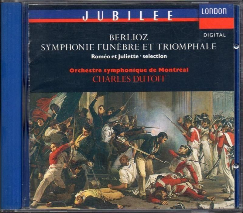 −[1]はフランスの7月革命10周年の記念式典のために書かれたもの。葬列とともに演奏する第1楽章: 葬送行進曲、英雄の遺体を記念碑に安置する際に演奏する第2楽章: 追悼曲、そして式典を締めくくる第3楽章: 栄光の讃歌 (アポテオーズ) からなります。−編成は野外での演奏ということで大編成の吹奏楽のために書かれましたが、のちに弦楽合奏などのパートを追加。さらに第3楽章にアントニー・デシャンの詞による合唱が追加。ともに任意ですが、このデュトワの演奏ではどちらもありの特大編成による演奏です。