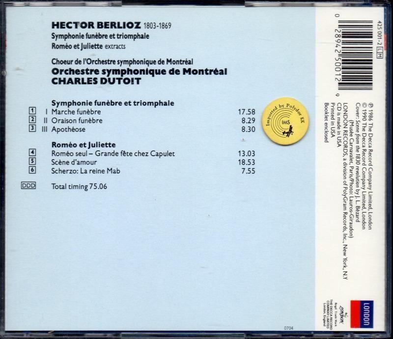 ベルリオーズ:葬送と勝利の大交響曲,ロメオとジュリエット抜粋 デュトワ=OSM (DECCA)