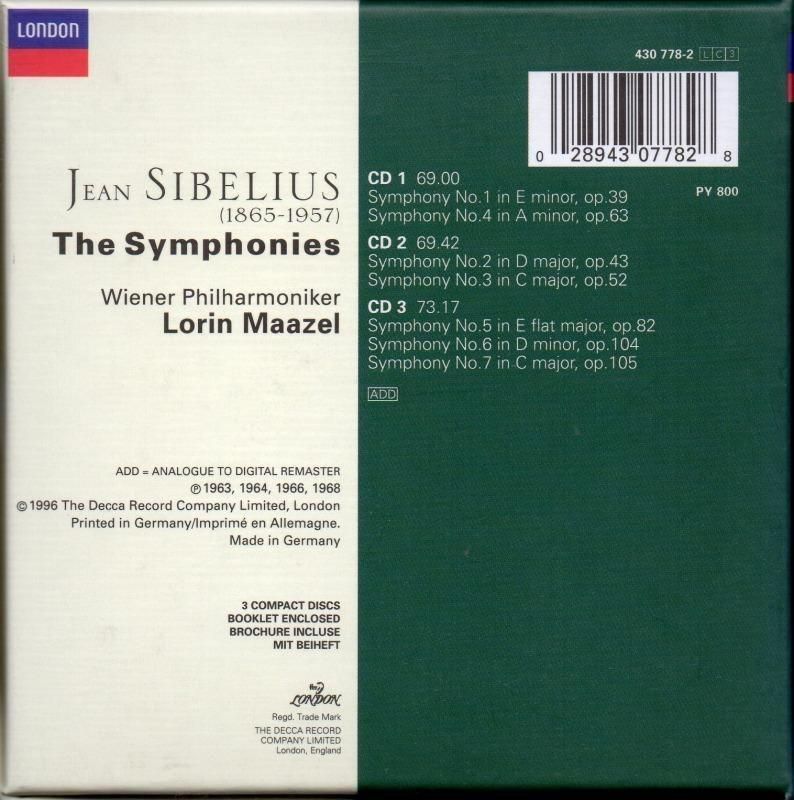 • サブ画像2:シベリウス:交響曲全集 マゼール=WP (LONDON*4307782・3CD)ジャケット写真
