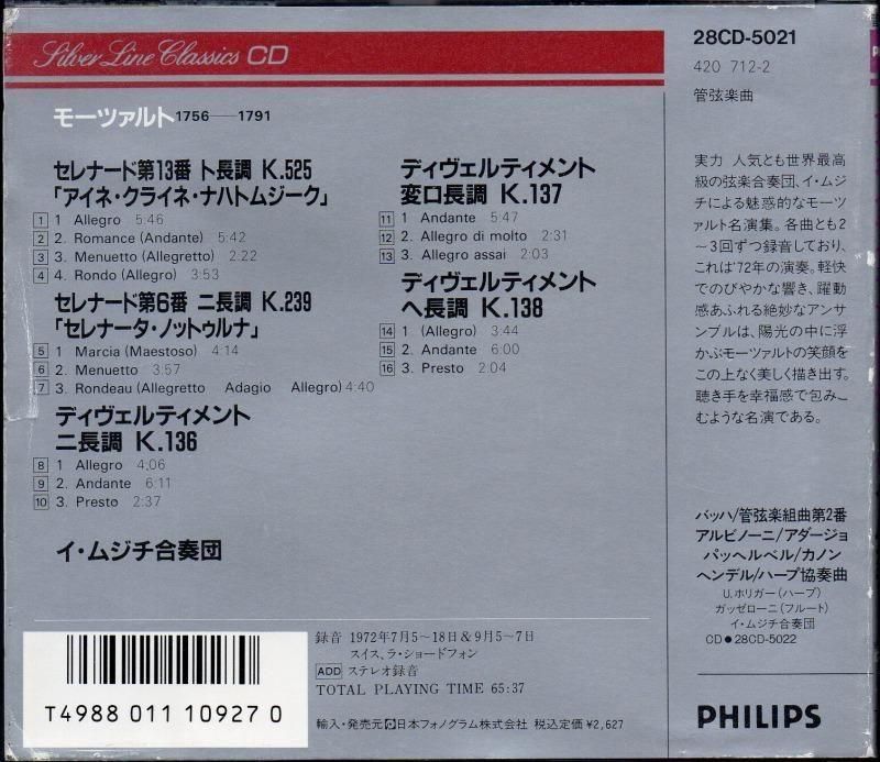モーツァルト:セレナード第6,13番,喜遊曲 K136〜8 イ・ムジチ /72年 (28CD5021)