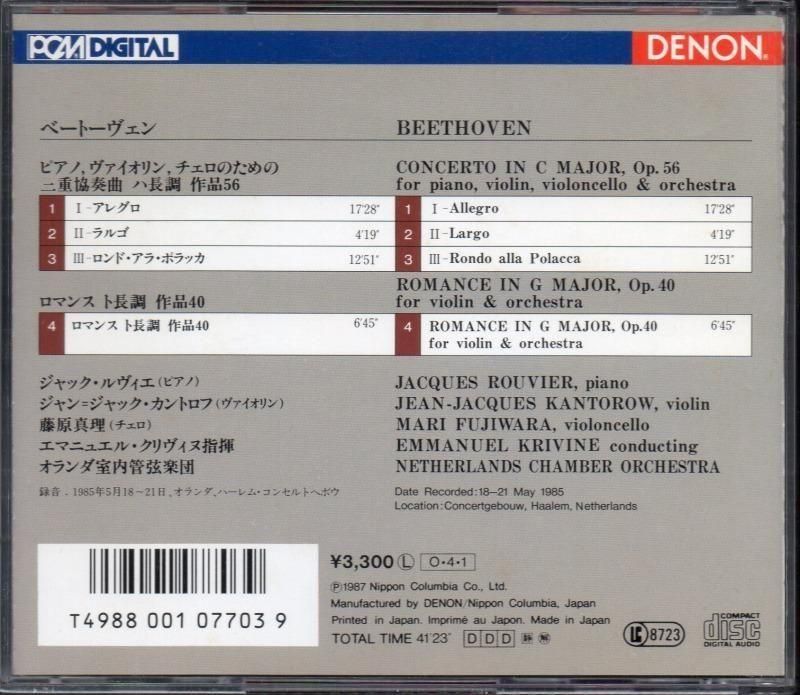 ベートーヴェン:三重協奏曲 他 カントロフ(vn) 藤原真理(vc) ルヴィエ(p) クリヴィヌ=NKO (33CO1407)