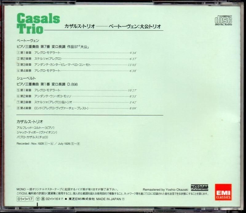 ベートーヴェン:ピアノ三重奏曲第7番,シューベルト:同 第1番 カザルスTr (TOCE11578)
