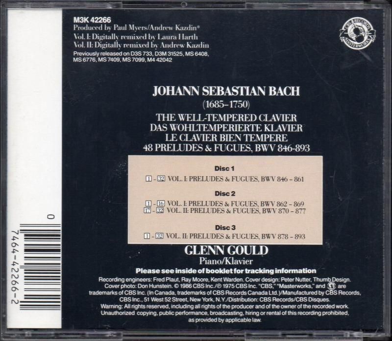 バッハ:平均律クラヴィーア曲集全曲 グールド(p) (M3K42266・3CD)*