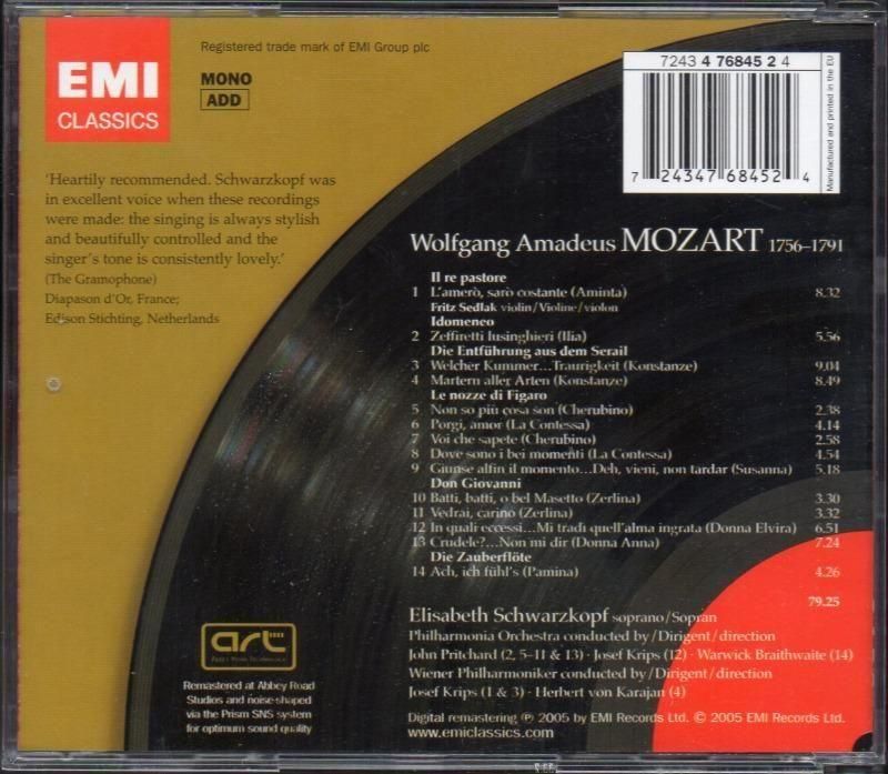 モーツァルト:オペラ・アリア集 シュヴァルツコップ(S) (EMI)