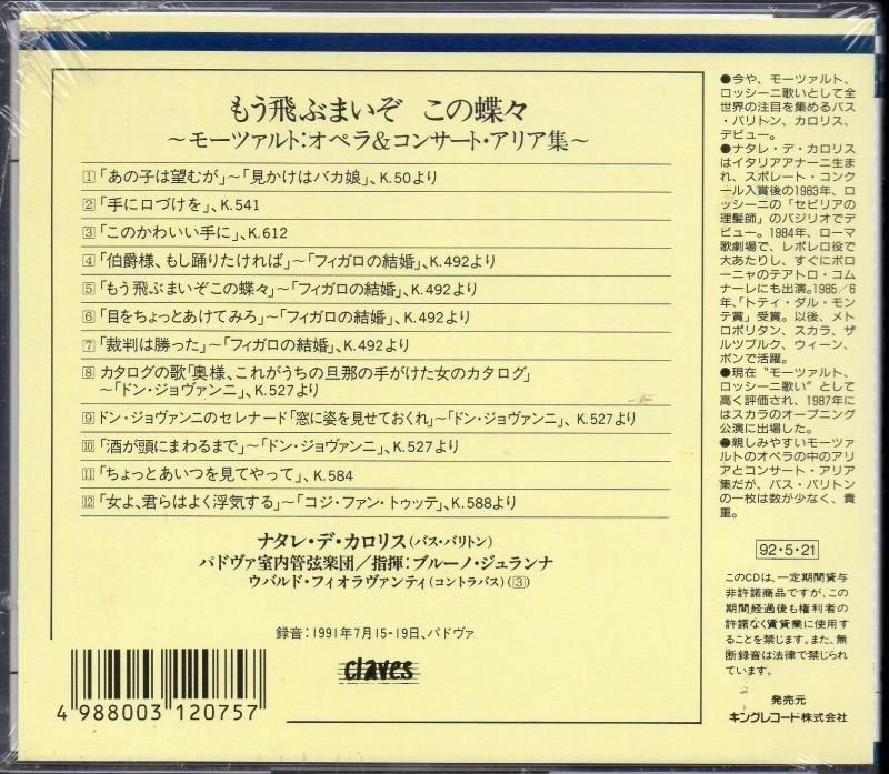• サブ画像1:モーツァルト:アリア集 ナターレ・デ・カロリス(Bs) (KICC7173)未開封ジャケット写真