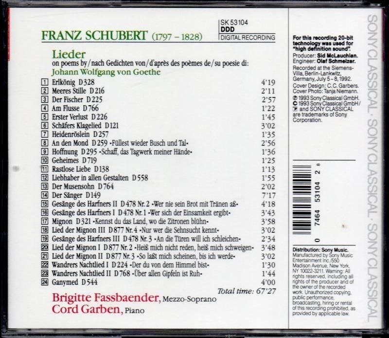シューベルト歌曲集 (ゲーテの詩による) (24曲) ファスベンダー(MS) (SK53104)