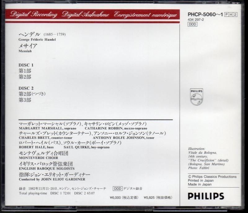 ヘンデル:メサイア ガーディナー=EBS,モンテヴェルディcho (PHCP5060・2CD)