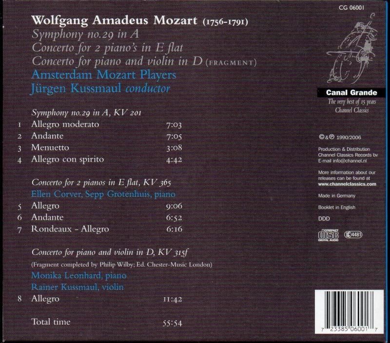 ■ユルゲン・クスマウル指揮 アムステルダム モーツァルト プレイヤーズ [2]エレン・コルヴァー,セップ・フローテンハウス(p) [3]モニカ・レオンハルト(p) ライナー・クスマウル(vn)