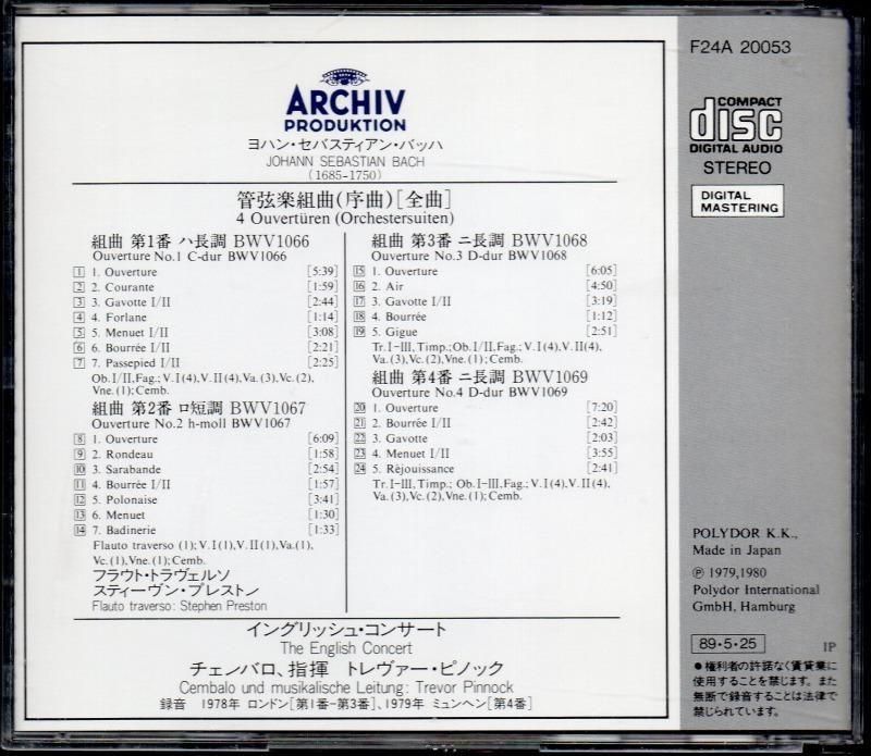 バッハ:管弦楽組曲全曲 ピノック=EC,Stプレストン(fl) (F24A20053)