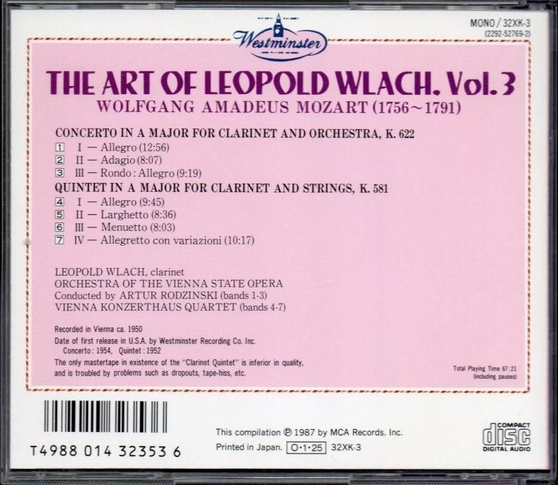 −CD時代初期、ワーナーがワーナー・パイオニアだった時代、WESTMINSTER を発売していました (その前はビクター)。日本では名盤として大事に聞かれ続けているウラッハのモーツァルトの国内初CD化盤です。