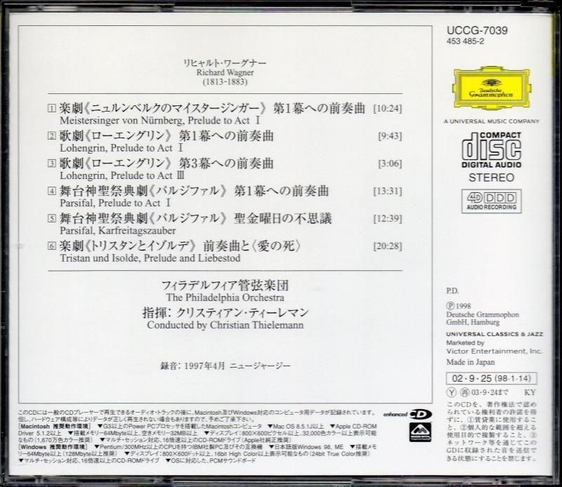 ワーグナー 管弦楽曲集 ティーレマン=フィラデルフィアo (UCCG7039)