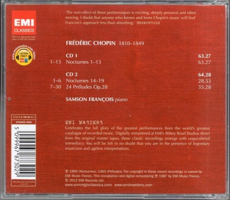 ショパン:夜想曲集,前奏曲集 各全曲 フランソワ(p) (EMI・2CD)