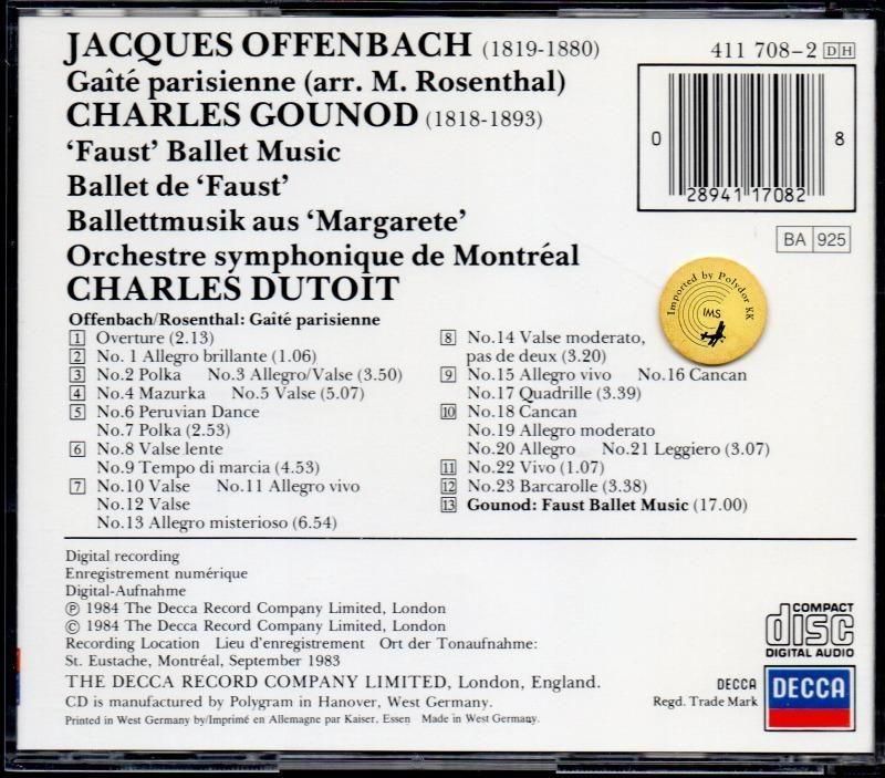 オッフェンバック:パリの喜び,グノー:「ファウスト」バレエ音楽 デュトワ=OSM (DECCA)