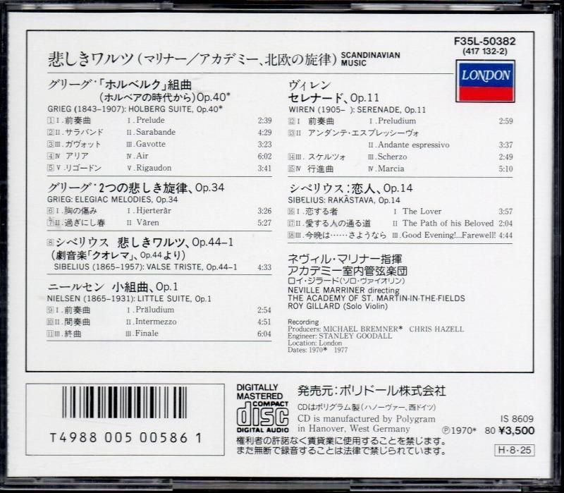 • サブ画像1:<北欧の旋律> ホルベルク組曲 他 マリナー=ASMF (F35L50382)ジャケット写真