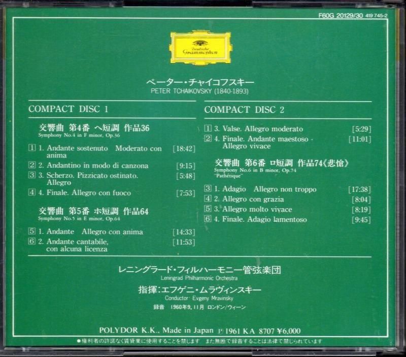 チャイコフスキー:交響曲第4〜6番 ムラヴィンスキー=Len (F60G20129・2CD)
