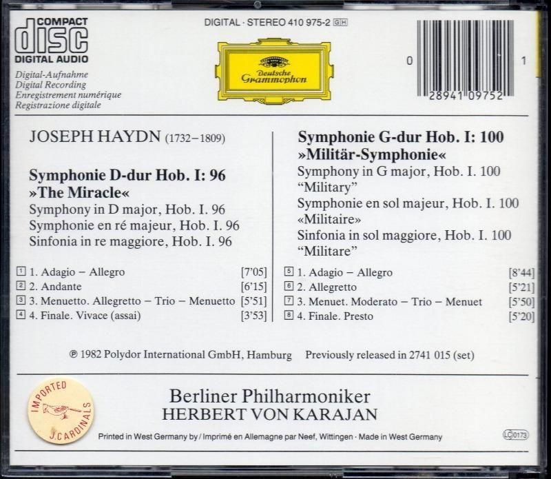ハイドン:交響曲第96,100番 カラヤン=BP (DG*4109752)
