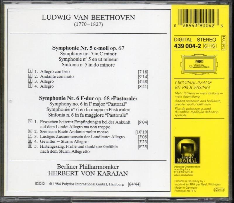 ベートーヴェン:交響曲第5,6番 カラヤン=BP (DG*4390042)