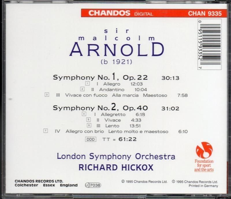 アーノルド:交響曲第1,2番 ヒコックス=LSO (CHAN9335)