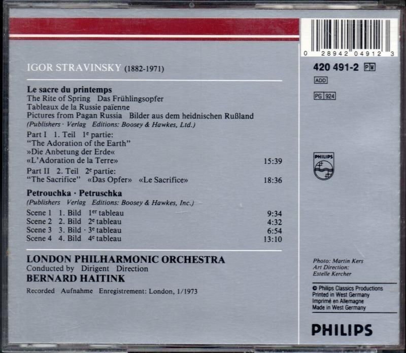 −ハイティンクは1973年 ストラヴィンスキー3大バレエ音楽を録音。また1988, 95年 同じくPHILIPSで ベルリン・フィルと3大バレエを録音していました。