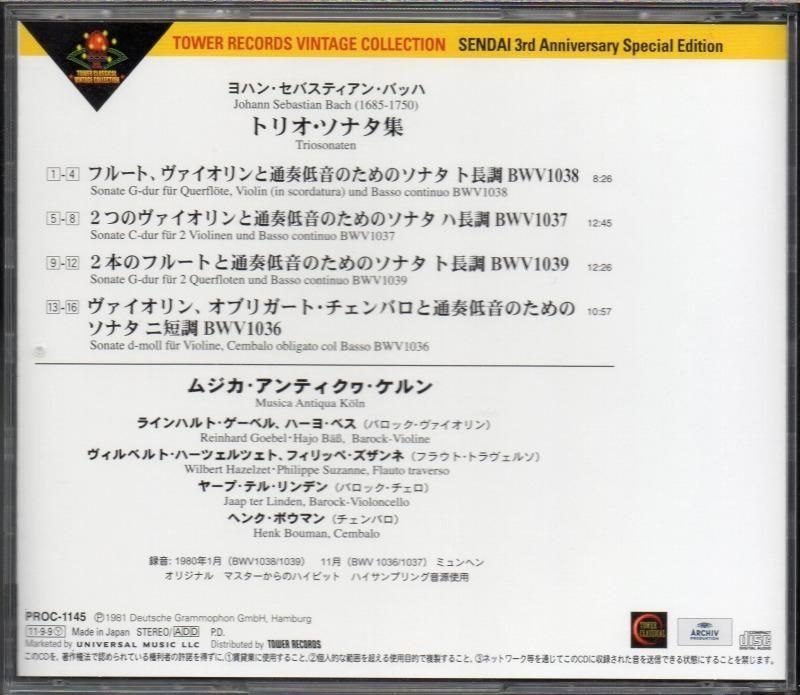 バッハ:トリオ・ソナタ集 ムジカ・アンティクヮ・ケルン (PROC1145)
