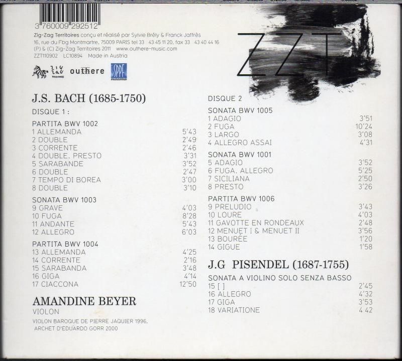 −ベイエ (ベイエール) はフランス・エクサン- プロバンス出身 (1974-)。4歳の時からヴァイオリンを始め、1990年 パリ国立高等音楽・舞踏学校に入学。1995年 バーゼル スコラ カントルムでキアラ・バンキーニのバロック・ヴァイオリンを学び、1999年 ソリスト・ディプロマを取得。1998年からバンキーニのアンサンブル415、サヴァールのラ カペラ レアル デ カタルーニャなどでの演奏し、頭角を現しました。2001年 トリノで開催されたヴィヴァルディ・バロック・ヴァイオリン・コンクールで優勝。2006年にはバロック・アンサンブル「リ インコーニティ (“知られざる人々” の意)」を主宰。日本でも公演をおこないました。2010年9月 バーゼル スコラ カントルムでバロック・ヴァイオリンの教授に就任し、教育にも力を注いでいますが、2015年にはピリオド楽器とガット弦で18世紀後半の音楽を演奏する「キットガット・カルテット (“腸弦” 四重奏団の意) を創設し、意欲的に活動しています。このバッハ無伴奏は、バーゼル スコラ カントルムの教授になる直前の時期の録音。世界中で話題となり、日本でも「レコード芸術」特選を獲得。またバッハ研究家 礒山雅氏もイザベル・ファウスト盤と甲乙つけがたいと評したとのことです。−大言壮語や、奇をてらったところのない、しぜん体の演奏に好感が持てます。−フィルアップとして、バッハに大きな影響を与えたドレスデンのヨハン・ゲオルク・ピゼンデル (1687- 1755) を収録。充分に芸術性高く、嬉しいオマケです。