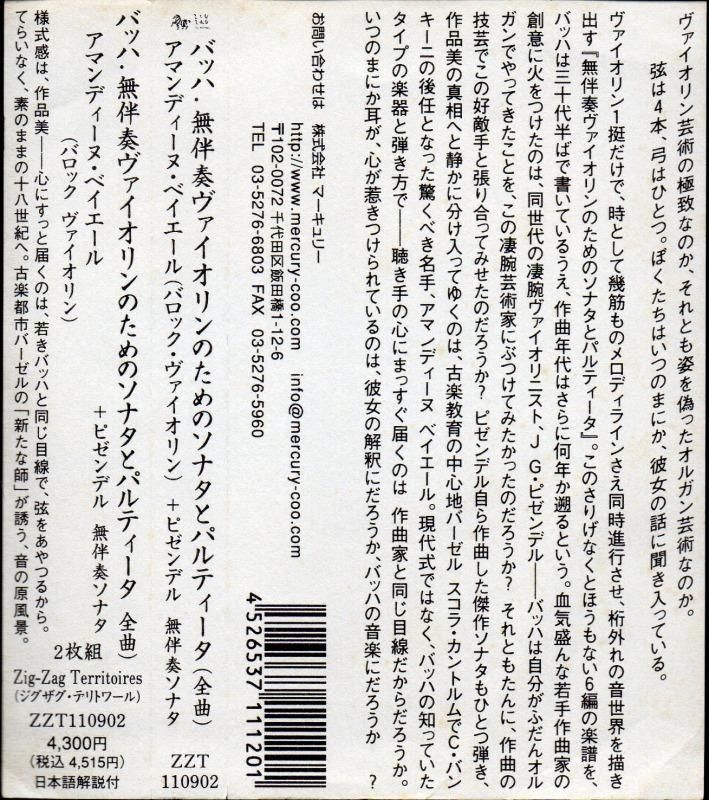 バッハ:無伴奏vnのためのソナタとパルティータ全曲 他 ベイエ(vn) (ZZT110902・2CD)