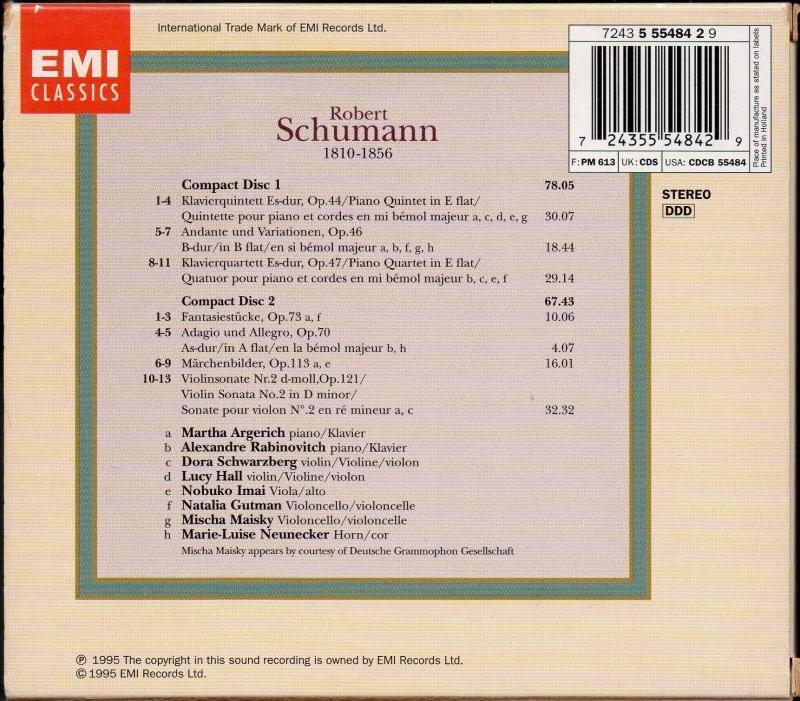 シューマン室内楽曲集 アルゲリッチ, ラビノヴィチ(p) 他 /L(EMI・2CD)